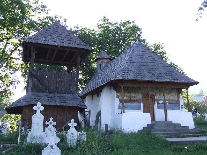 De houten kerk van Malaia ligt in het gelijknamige dorp in het district Vâlcea